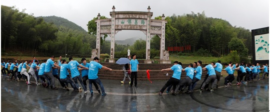 天公作美,下過大雨的空氣涼爽濕潤,最適合爬山。大家先在山前的廣場開展了一場男女混合拔河比賽,作為登山的熱身,公司袁董事長一聲令下,兩邊的隊員紛紛使出了吃奶的力氣,雙方勢均力敵,誰的耐力更久,就必將獲得勝利。拔河比賽后,大家輕松的開始了登山之旅。