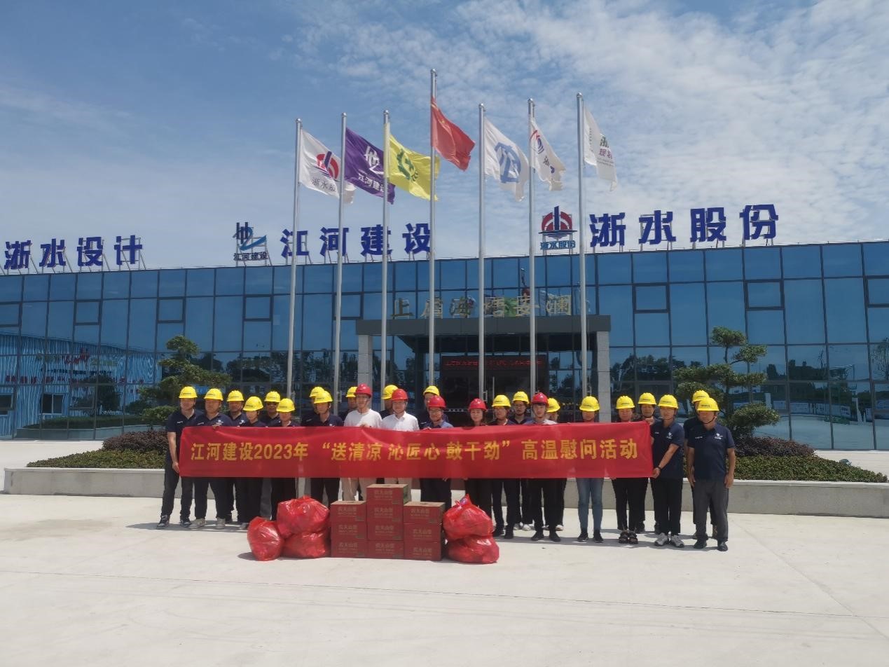 “夏送清涼,關懷暖心”。時值盛夏酷暑,江河建設公司各重點在建工程項目正在有序推進,一線的職工們備受“烤”驗。為有效改善職工生產生活條件,認真做好高溫天氣職工勞動保護工作,連日來,浙江江河建設有限公司工會組織開展“送清涼,沁匠心,鼓干勁”為主題的高溫慰問活動,成立由工管、工會、人力、安全等負責人組成的“紅+安全”慰問組,帶著公司董事長袁偉忠、總裁陳宋江的關懷問候和委托,深入全國各地的項目施工現場,慰問奮戰在高溫一線的工人,為其送去礦泉水、毛巾、風油精、飲料、藿香正氣水等防暑降溫等物資,并為他們對公司高質量發展建設作出的貢獻表示感謝。