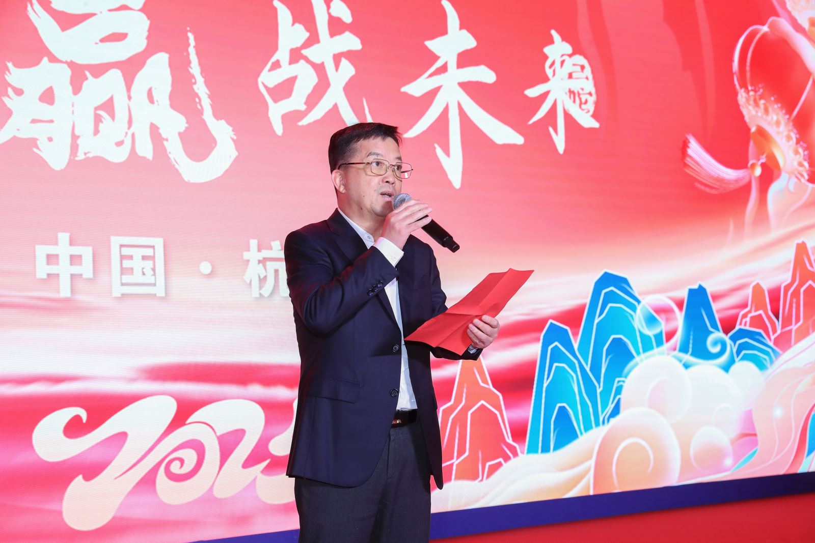 晚會現場,20名揮旗大軍在音樂中鏗鏘有力步入舞臺中央,旗幟飄揚高喊“金蛇啟運,筑夢前行”,將現場氣氛點爆。隨后,袁偉忠董事長祝酒舉杯,愿大家在新的一年里編織出屬于自己的輝煌篇章,突破自我,砥礪前行。