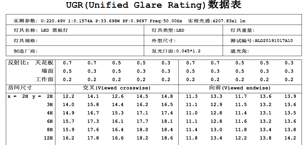 LED黑板燈眩光數(shù)據(jù):