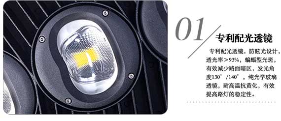 1:專利偏心透鏡,防眩光設(shè)計,透光率> 93%2:蝙蝠形光斑,光照區(qū)域更大,有效減少路面暗區(qū)