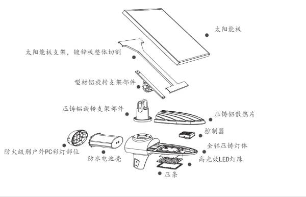 - 專業(yè)工業(yè)設計團隊設計,集太陽能板,光源,控制器,電池,人體感應于一體
