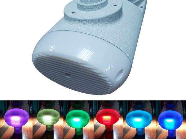 第二代一體化太陽能路燈尾部采用RGB彩燈設計,六種顏色輪流不停閃爍,可調節(jié)閃爍快慢,也可關閉,給黑夜道路添加了不一樣的色彩