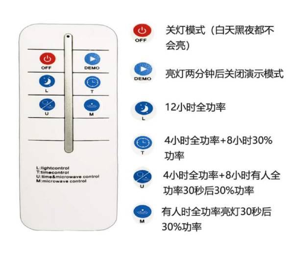 采用無人機遙控方案,遙控距離可達30米,可直接穿透障礙物,四種亮燈模式可供選擇,可根據(jù)季節(jié)陽光的模式。