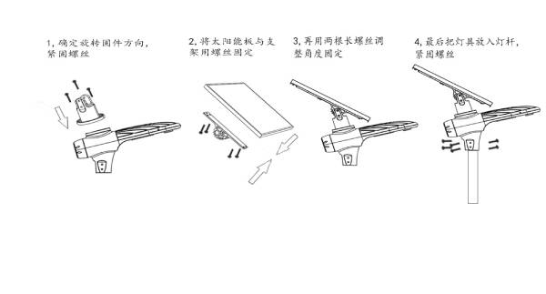 1.安裝時太陽能板可根據(jù)所處地區(qū)情況調節(jié)最佳受光角度。安裝組件時盡量輕拿輕放,嚴禁碰撞,敲擊,以免損壞。