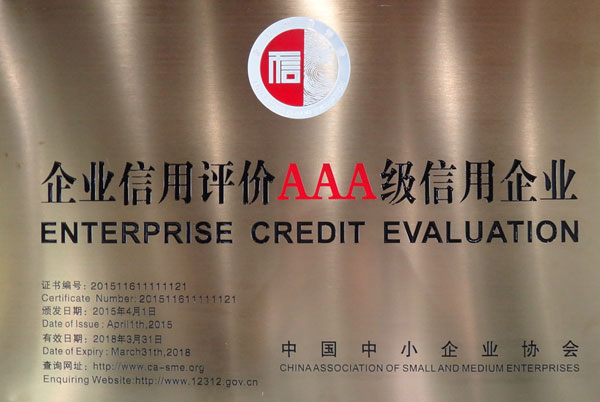圖二:AAA級企業(yè)信用等級證書