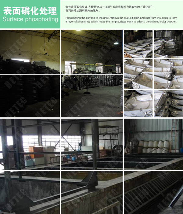 燈殼表面磷化處理,去除銹跡,灰塵,油污,形成強(qiáng)吸附力抗腐蝕的“磷化層”,有利於噴涂顏料粉末的吸附。
